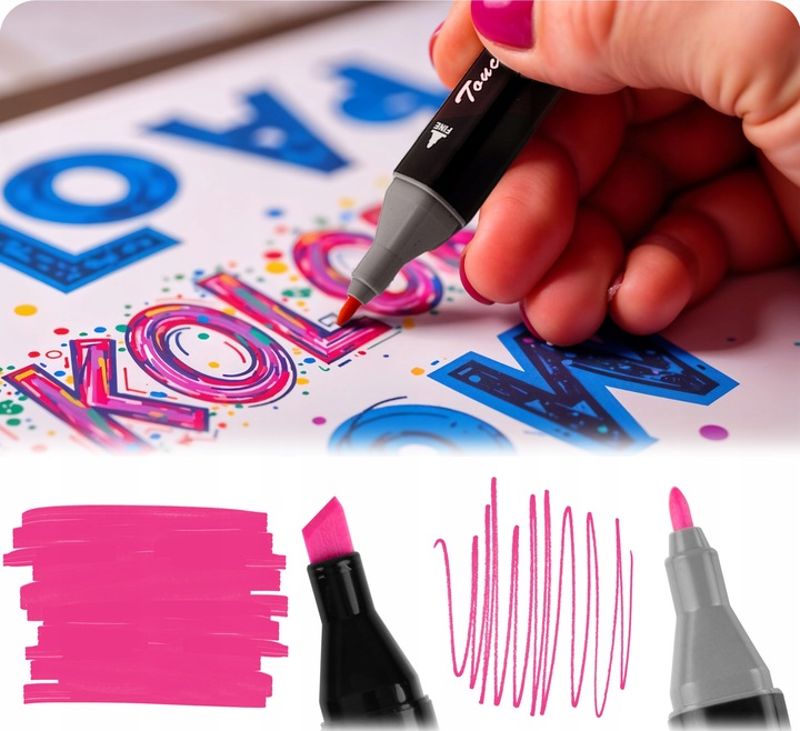 - Markery z dwoma końcówkami są idealnym narzędziem do nauki kaligrafii i liternictwa.