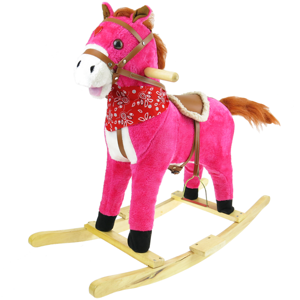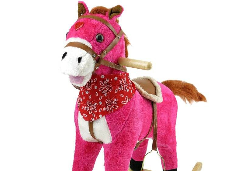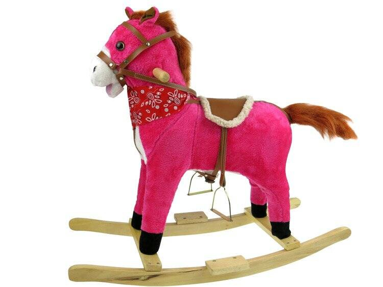 Gdy naciśnie mu się uszy, wydaje odgłos galopu i zaczyna rżeć. Zabawka jest bardzo wytrzymała i stabilna, a bieguny zostały wykonane z drewna. Konik pokryty jest miękkim, miłym w dotyku materiałem z nałożonym na niego siodłem.
