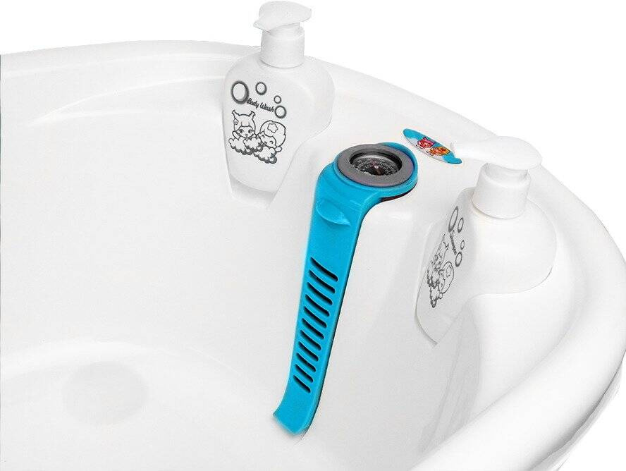 Wanienka posiada bardzo przydatną funkcję pomiaru temperatury dzięki czemu kąpiel stanie się bardziej bezpieczna. Dostosowuje się do wieku dziecka poprzez wykorzystanie podwójnej pozycji: leżącej od 0-6 miesięcy oraz siedzącej 6-15 miesięcy. Specjalnie wyprofilowana konstrukcja wanienki pozwala na kąpiel dziecka bez pomocy drugiej osoby. Dodatkowymi atutami są antypoślizgowe nóżki oraz pojemniki na produkty myjące.