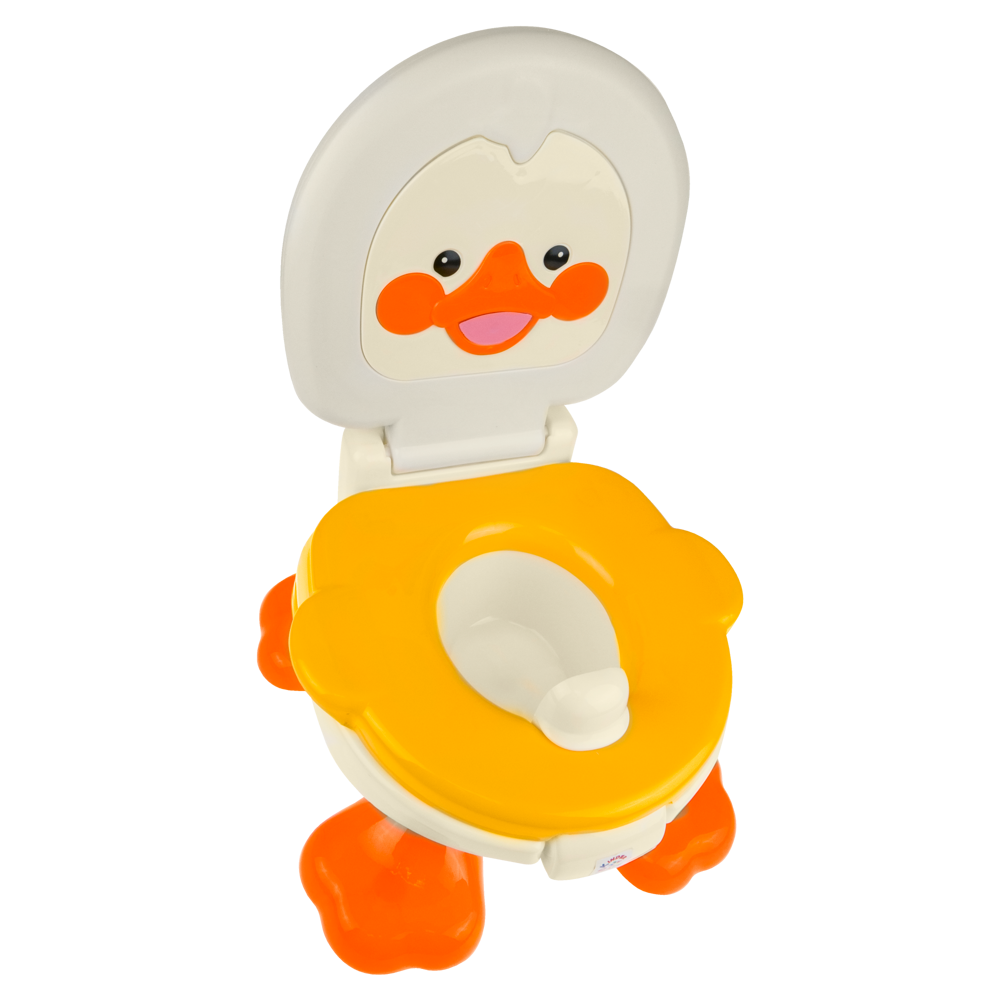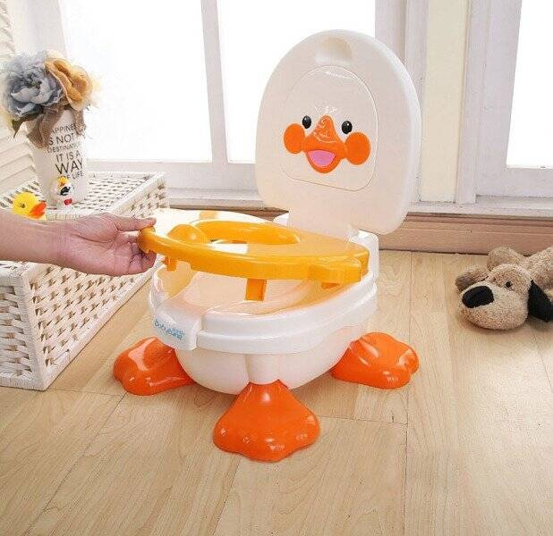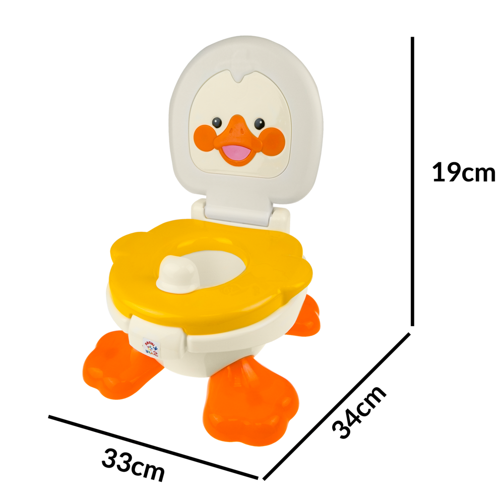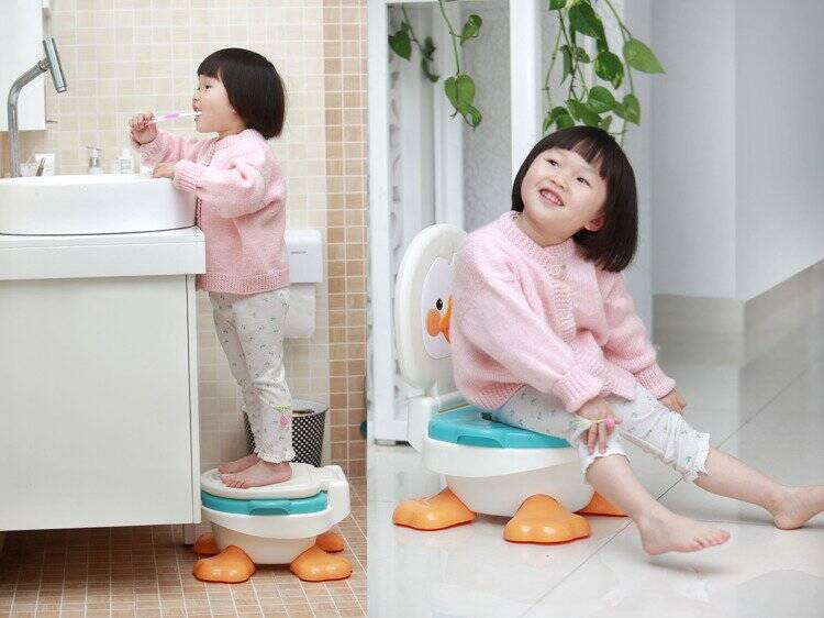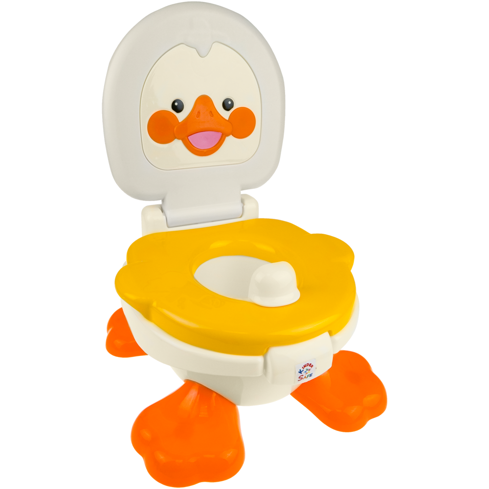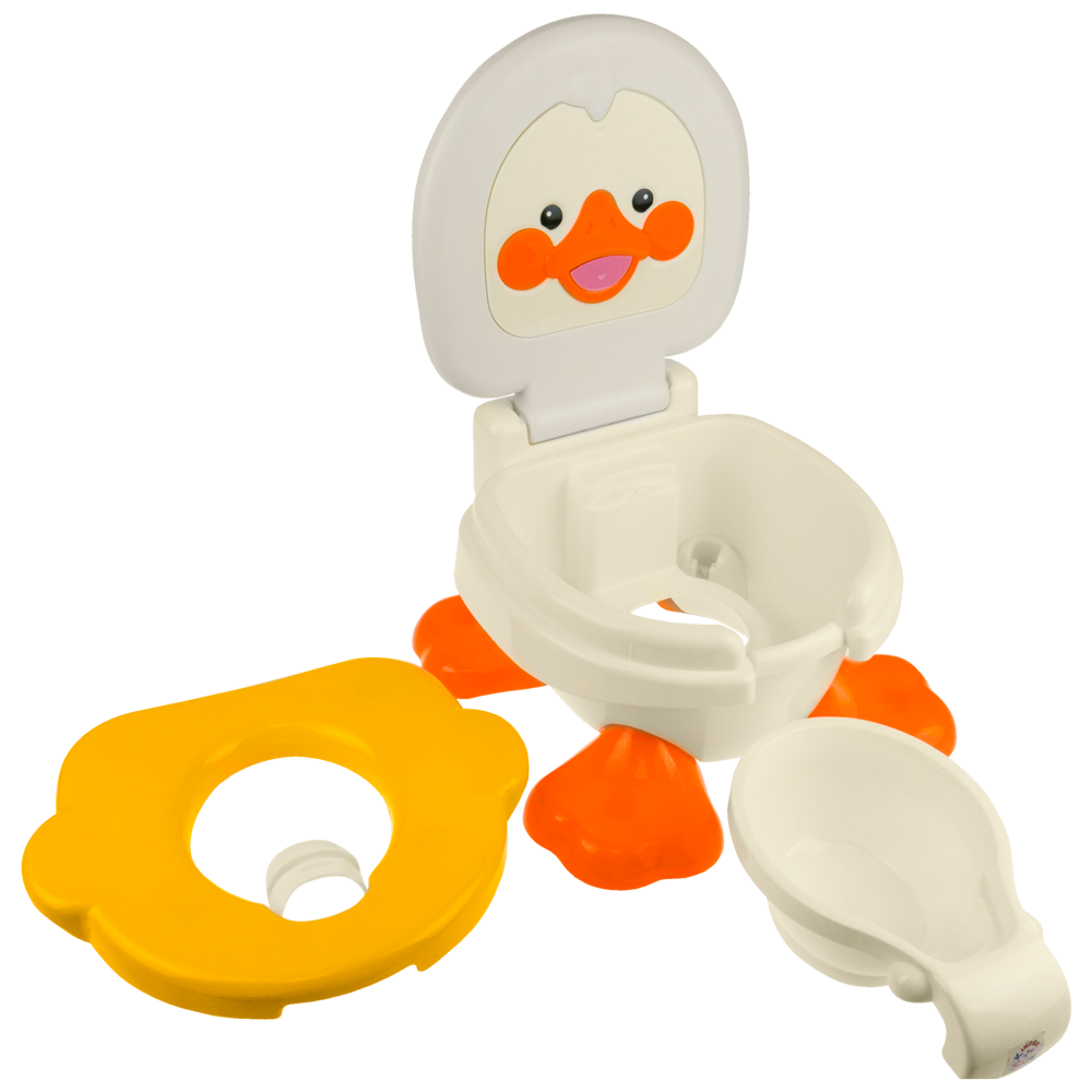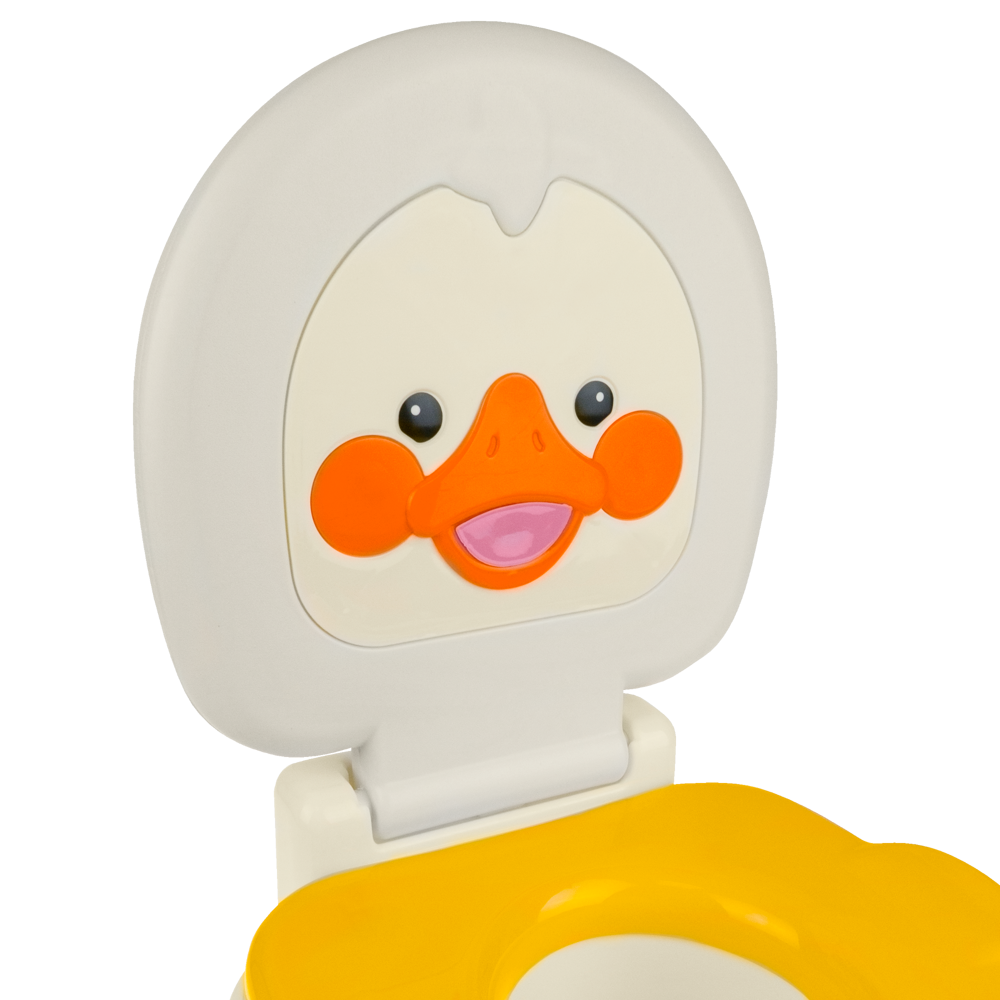 Kiedy dziecko podrośnie można używać nakładkę treningową na prawdziwej desce sedesowej. Kaczka może być wykorzystana jako podnóżek, aby samodzielnie umyć rączki. Dzięki tym dodatkom dziecko może samodzielnie uczyć się korzystania z prawdziwej toalety a niewygodne pieluchy staną się zbędne.