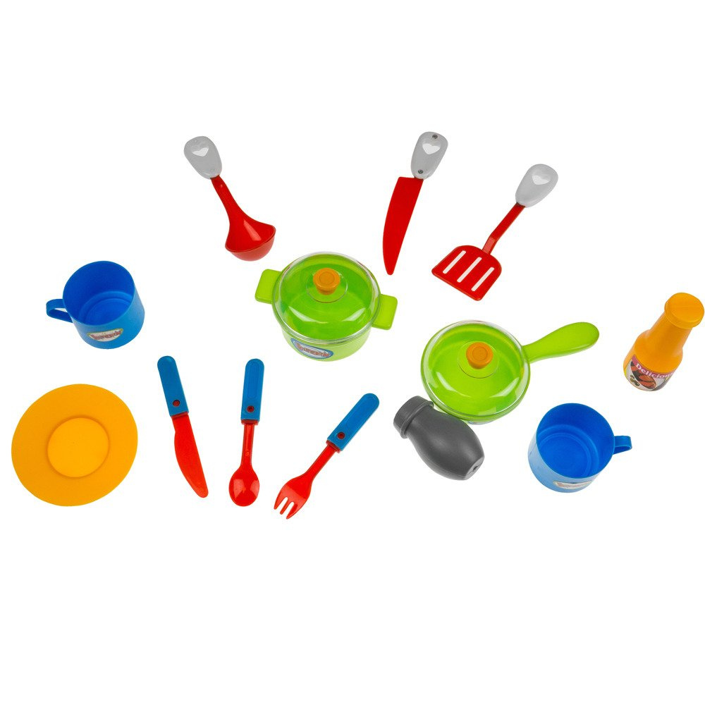 Zestaw małego kucharza uczy pociechę obowiązkowości i dojrzałości - bawiąc się w dom naśladuje rodziców. Zabawa rozwija instynkt opiekuńczy, gdy dziecko przygotowuje posiłki dla swoich lalek i karmi je.