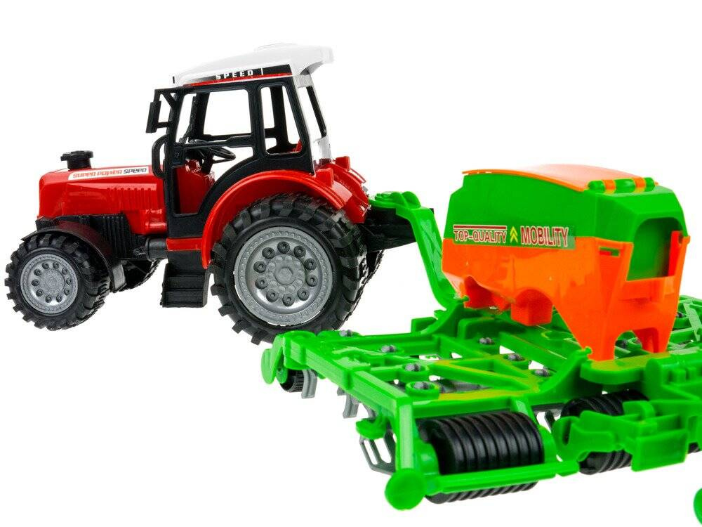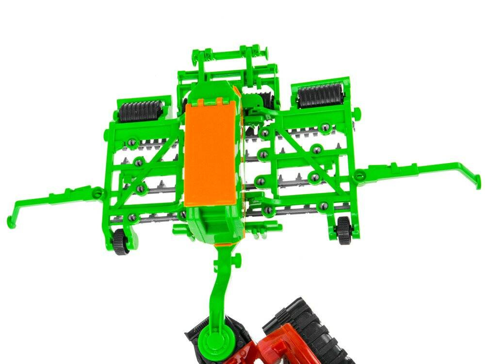 Traktor wykonany jest z wysokiej jakości materiałów i wygląda niezwykle realistycznie. Siewnik posiada ruchome elementy: zbiornik na nasiona z podnoszoną pokrywą  oraz obracające się elementy walca. Posiada intensywne, żywe kolory. Z najdokładniejszymi szczegółami oddaje prawdziwy ciągnik. Zabawa z traktorem to aktywna i ruchowa zabawa, która rozwija motorykę dziecka.