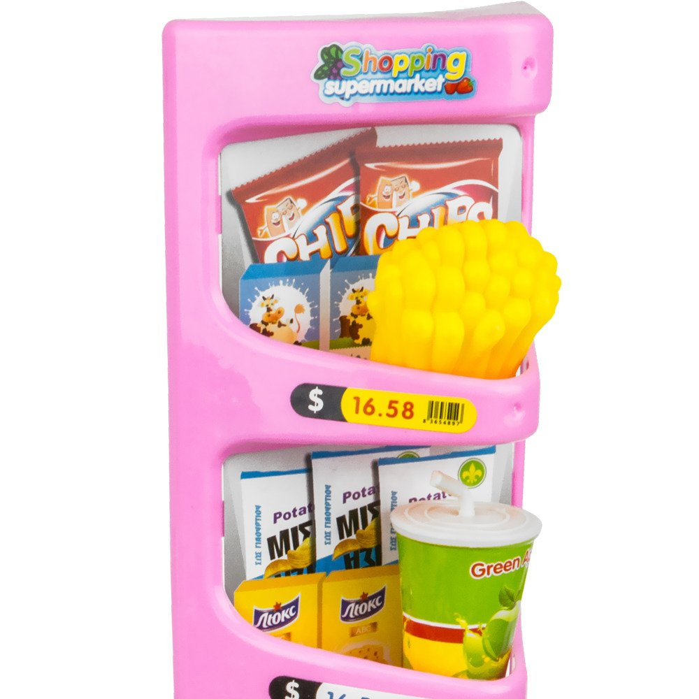 Sklep ma dużo półeczek i koszyczków, w którym można poukładać dołączone do zestawu akcesoria (produkty spożywcze). Wśród akcesoriów maluch znajdzie owoce i warzywa (truskawka, mandarynka, cytryna, śliwka oraz karczoch), lody, sok z rurką oraz frytki.