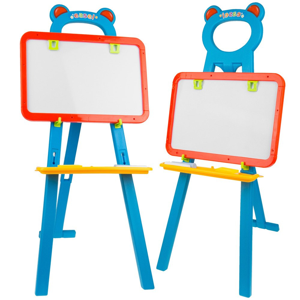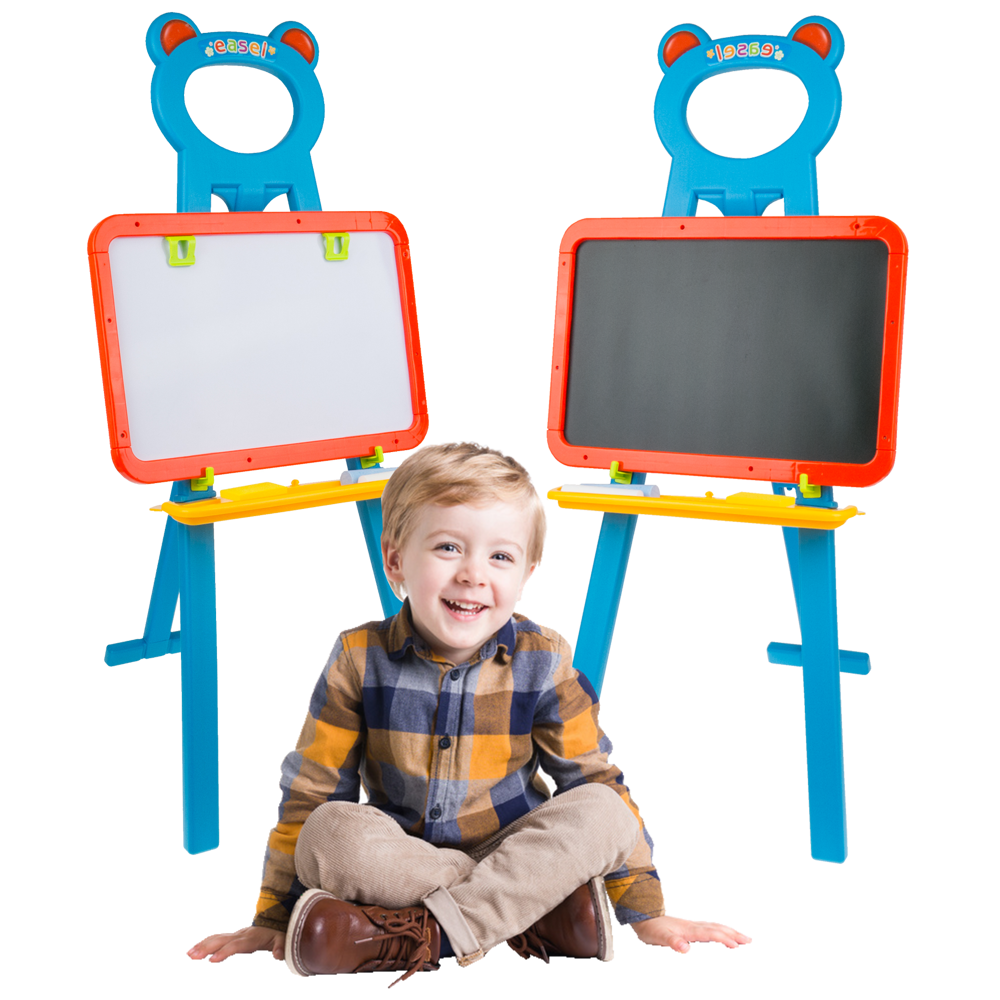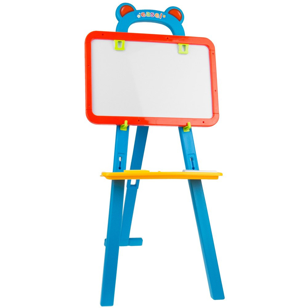 Duża tablica dwustronna jest świetną zabawką dla najmłodszych. Tablica to idealne miejsce do ćwiczenia pierwszych literek czy cyferek. Dzięki możliwości szybkiego zmazania zrobionego błędu maluch może ćwiczyć rysowanie różnych kształtów i poznawać je.