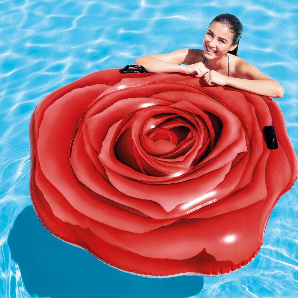 - Fantastyczny materac do pływania o dużym rozmiarze z niezwykłym, bardzo realistycznym nadrukiem czerwonej róży.