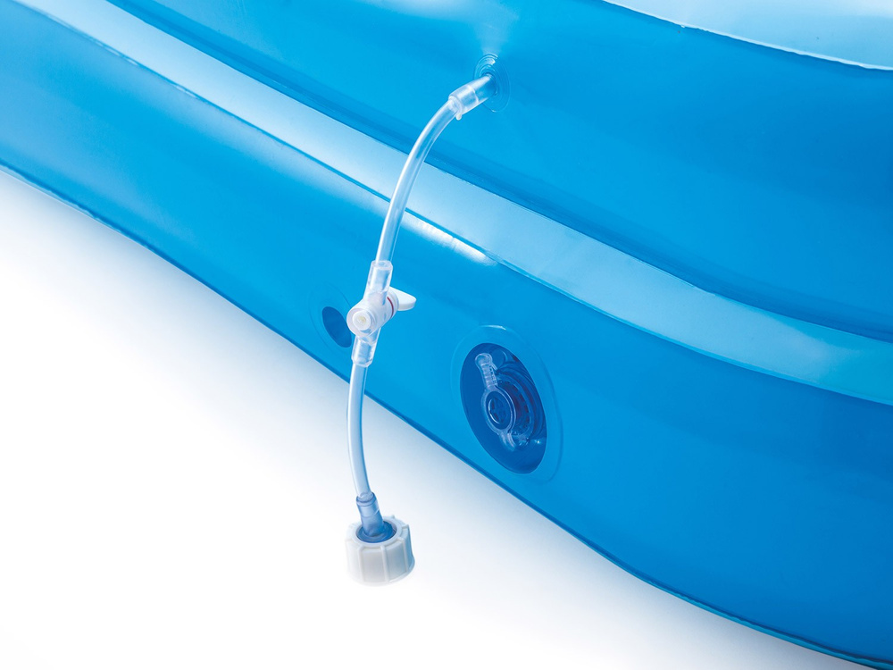 Basenik posiada stabilną konstrukcję, wykonany jest z solidnego winylowego materiału, intuicyjny w montażu.